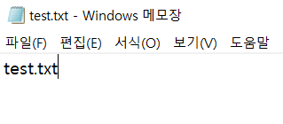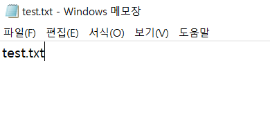 # 파일 이름 입력하는 창에가서 'test.txt' 라고 입력